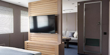 Large windowKing-size bedBathroom with showerSeparate bedroom and lounge areaTV and radioRefrigeratorAir conditioningSafe for your valuables220-volt sockets
