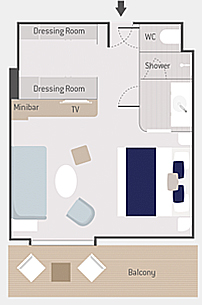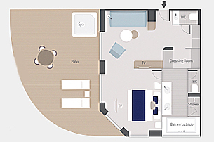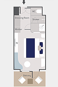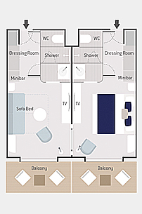 Stateroom layout: king-size bed, or twin beds, communicating staterooms available (Children welcome)