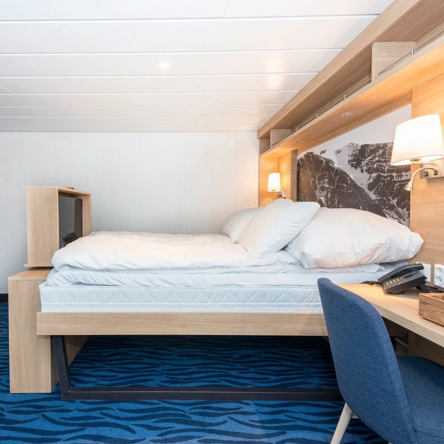 After complete reconstruction, MS Spitsbergen joined the Hurtigruten fleet in 2016. The ship features high technical standards as well as comfortable, modern public areas and cabins. The vessel´s fresh Scandinavian design reflects a colour palette derived from the sea. She is modern and environmentally progressive, and we plan further improvements that will reduce emissions and fuel consumption even more. The new ship’s maneuverability and optimal size make her quite suitable for exploring polar waters.